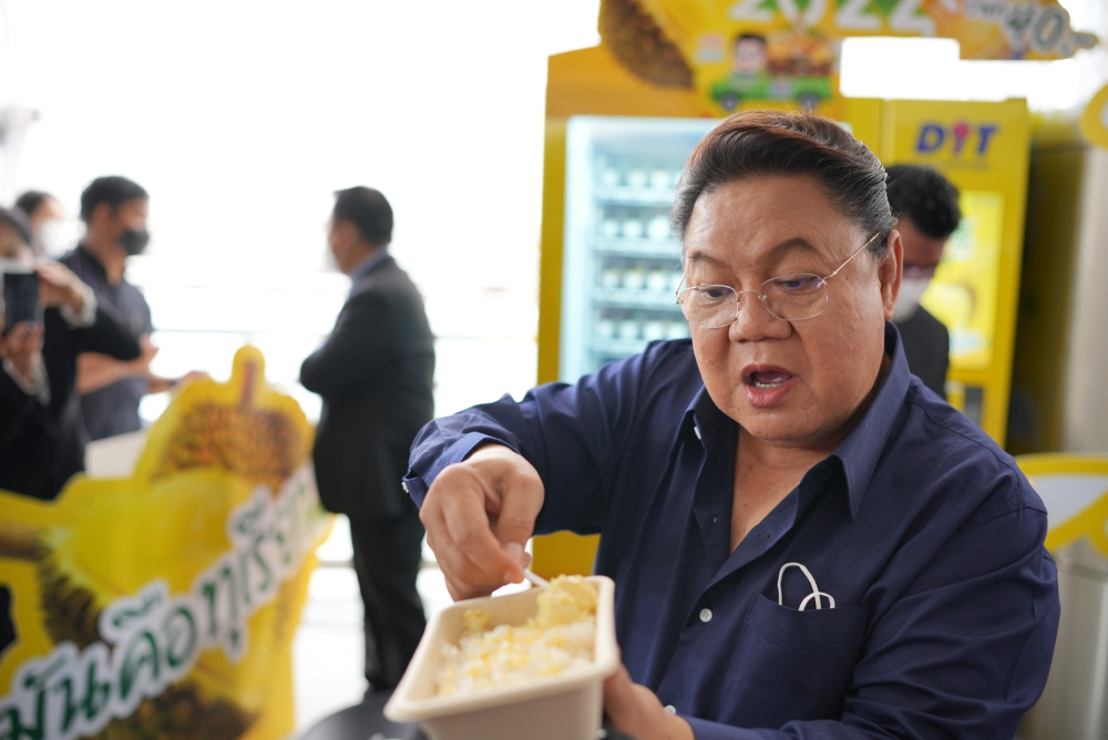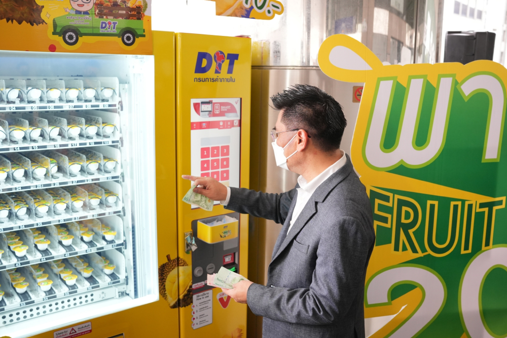 This morning (August 26th, 2022), Mr. Wattanasak Sur-Iam, the Director General of Department of Internal Trade (DIT) and Mr. Kraitawat Sribenjaratana, CEO of Delicious Destination participate the grand opening of frozen vending machines with 100% Durian capsules at Ladprao MRT station and Chong Nonsi BTS station.