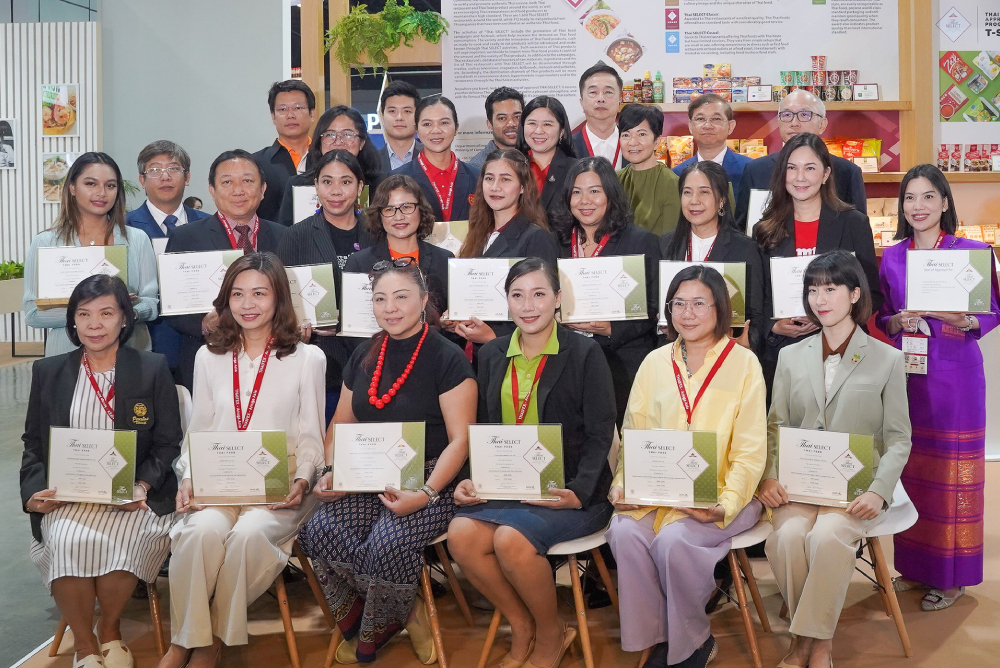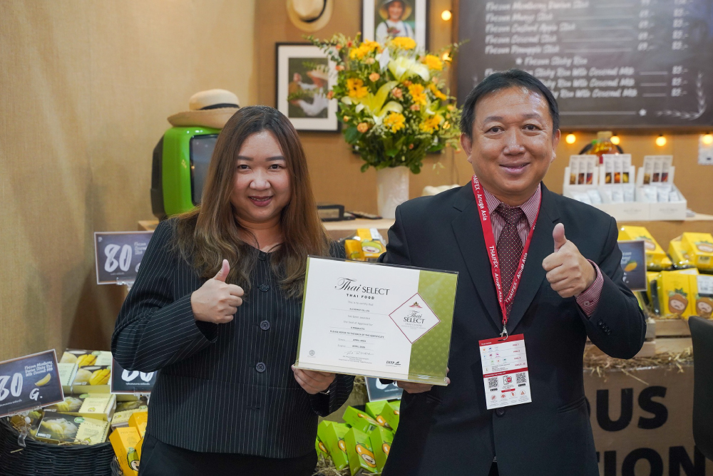 On May 24th, Mr. Kraitawat Sribenjaratana, CEO of Delicious Destination, received the Thai Select Products emblem from Ms. Jittima Srithaporn, Deputy Director General of the Department of International Trade Promotion, within the grand Thaifex Anuga Asia 2023 exhibition, the largest and most comprehensive food and beverage showcase in Asia. The presentation took place in Hall 9 at Impact Muang Thong Thani.