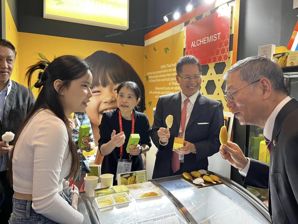 At the exhibition, we presented our 100% Thai frozen fruit products such as Durian, Mango, Custard Apple, Coconut, Pineapple, Jackfruit which could be taken anywhere, any time and any seasons.